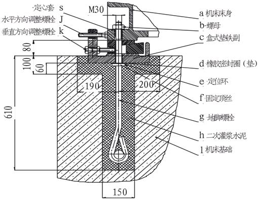 圖7中“s”為床身地腳孔與地腳螺栓定心套,它保證床身水平方向調整時有足夠的空隙,防止孔壁與地腳螺栓外徑干涉,不可漏裝。