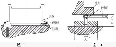 (7)將調整墊鐵副與地腳螺栓裝入床身(圖7、圖8)。具體工序如下:
